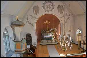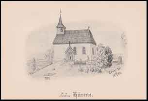 Södra Härene gamla kyrka ritad av Ernst Wennerblad år 1889.